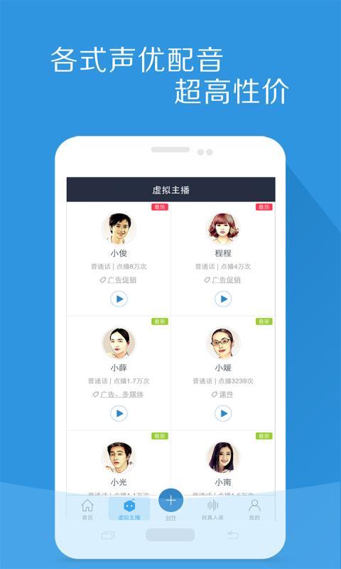 1、制作速度快:操作簡單,隨時調(diào)試,即刻生成。2、性價比高:相同字?jǐn)?shù),比人工配音價格更低。
