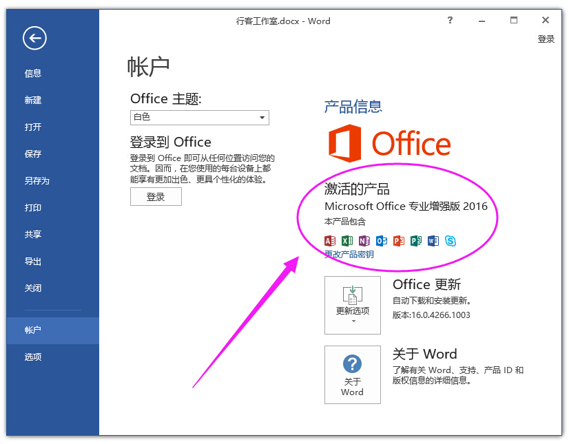 現(xiàn)在打開(kāi)word文檔 點(diǎn)左上角的文件 賬戶可以看到激活情況。