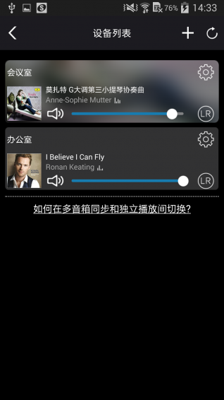 2、通過(guò)MUZO播放器app,可以對(duì)Cobblestone進(jìn)行配置,將音箱組成多房間進(jìn)行同步播放,并且可以將云端的音樂(lè)或者手機(jī)上的音樂(lè)推送到Cobblestone進(jìn)行播放。