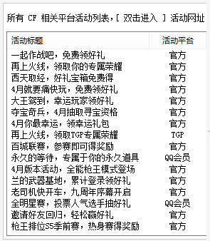 1、收集所有CF相關(guān)活動;2、快捷登錄QQ;