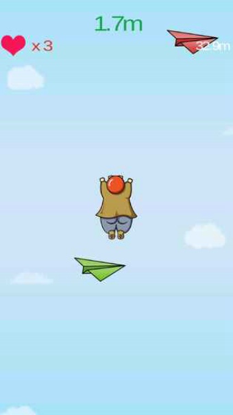 躲避障礙,點(diǎn)擊屏幕,人物向上飛,離開屏幕,人物下落,以此來躲避飛機(jī)并飛的更高