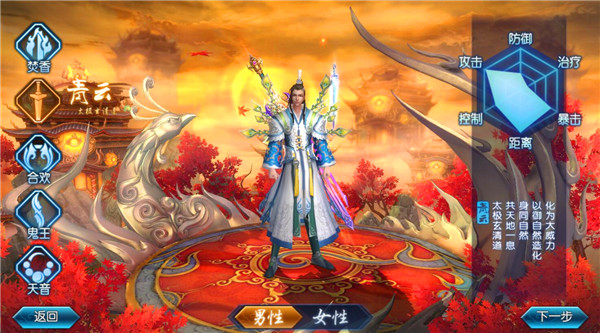 以斬妖除魔為己任的青云,修煉太極玄清道,一身白衣飄飄,正氣凜然。該職業(yè)系法術(shù)輸出,注重人劍合一,復(fù)現(xiàn)了玩家所熟知的“神劍御雷真訣”,以及其它一些小說(shuō)或端游的經(jīng)典技能,劍引煌煌天威,斬?cái)秤谇Ю镏狻?br />