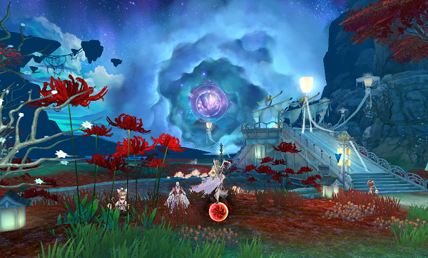 忘川的天空中,是水天一色的輪回之境,亡者在茶攤喝下孟婆湯后,會(huì)在此處等待下一個(gè)輪回……