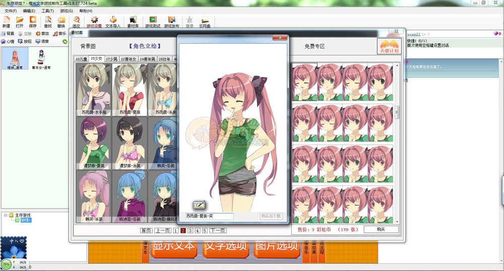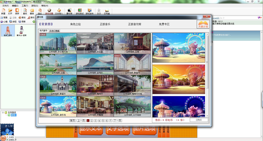 正版素材庫:橙光提供一大批正版素材,作者可以以制作成本的1-2%的價格購買,購買后精心處理好的素材就會出現(xiàn)在工程里,一拖拽就能直接使用了。正是使用這個高效的素材庫,才使得開發(fā)速度遠超過其他工具——而且,使用這套庫的話,整個游戲沒有任何版權(quán)爭議,做出來的東西干干凈凈,毫無盜版資源或遭人指責(zé)的隱憂。