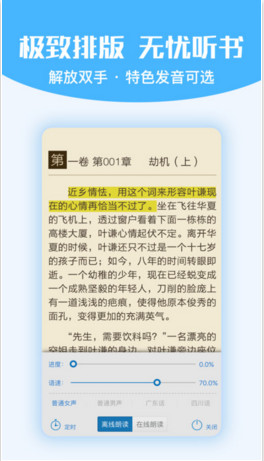 支持多種翻頁效果,自定義字體設(shè)置,多種閱讀貼心模式