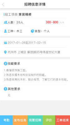天天早工團隊版app是一款幫助施工團隊快速找到合適的工人的手機軟件,企業(yè)可以發(fā)布招聘信息,還可以安排團隊下面的成員的任務和考勤等,讓招聘變得更加簡單。