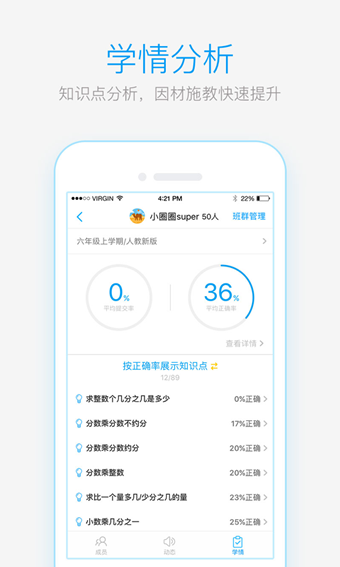 作業(yè)盒子小學(xué)老師app是一款專為教師打造的便捷教學(xué)軟件,軟件支持講、測、練等在內(nèi)的多種教學(xué)模式,老師可以通過軟件了解學(xué)生的學(xué)習(xí)情況并評分,有利于老師因材施教。