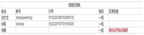 9.反饋信息中若提示身份證格式錯誤,表示此身份證號有誤,請先進(jìn)行刪除,核對此身份證號,核對調(diào)整后,可由班主任在查看學(xué)生賬號欄目中進(jìn)行單個添加。
