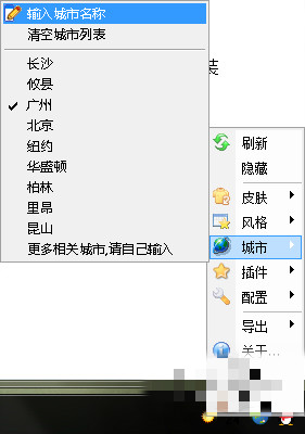 1、打開桌面天氣秀,在系統(tǒng)托盤右鍵點(diǎn)擊桌面天氣秀圖標(biāo),選擇城市-輸入城市名稱