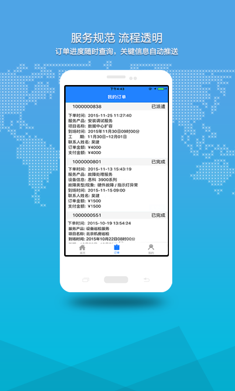1、簡單:三步下單,簡單易用,隨時(shí)隨地快速找資源;2、透明:平臺(tái)按用戶需求精確派單,服務(wù)狀態(tài)實(shí)時(shí)更新;