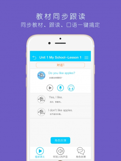 涵蓋人教新起點(diǎn)、外研新標(biāo)準(zhǔn)、人教PEP、劍橋考試等多種主流教材中的所有英文對(duì)話和單詞,課后跟讀,隨時(shí)隨地。