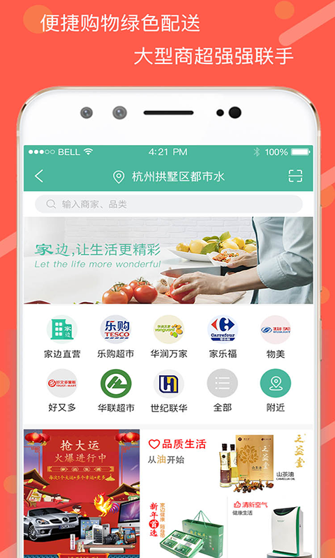 家邊生活app是一款非常實用的購物軟件,軟件涵蓋大型超市購物服務、書畫、傳承、健身、教育和建材等九個模塊,軟件與知名商家及大型超市合作,有綠色優(yōu)質的配送將貨物送到您家,讓您暢享便捷輕松的生活。