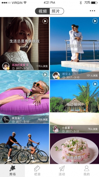 【視頻展示】在這里,可以看到形形色色的人和千姿百態(tài)的人生。無(wú)論你是搞笑段子手,愛唱愛跳的元?dú)饩`,時(shí)尚搭配達(dá)人,還是美妝烹飪高手,都可以上傳你的短視頻到這里。高清短視頻,清晰度專為大屏幕設(shè)計(jì),你值得擁有更好的。【照片展示】這里是小鮮肉,小仙女,小逗比,老干部,男神女神們的聚集地,他們都在這里用文字和自拍記錄自己每天的狀態(tài)和心情。
