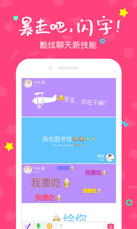 閃聊- 00后的聊天App!閃字特技+ 涂鴉聊天+ 表情斗圖= 撩妹、撩漢紙技能秒+1W點(diǎn)??!
