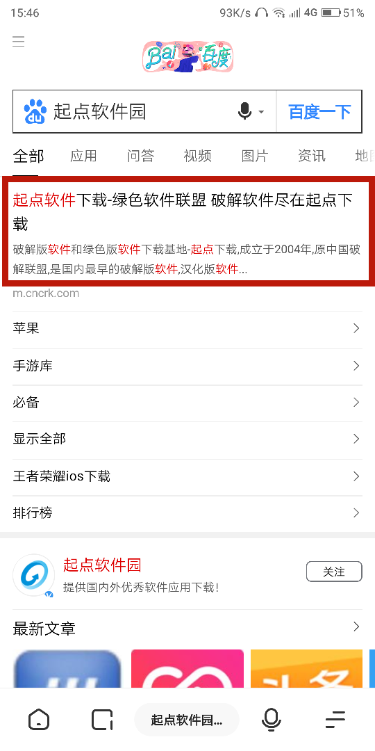 1.打開瀏覽器,百度搜索起點(diǎn)軟件園,點(diǎn)擊第一個(gè)進(jìn)入起點(diǎn)軟件園