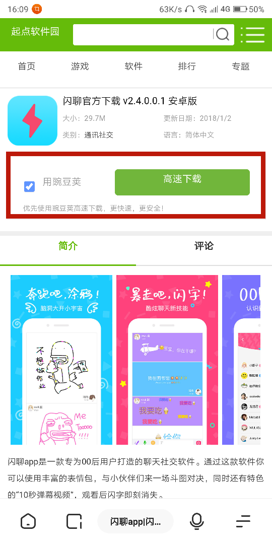 2.進(jìn)入起點(diǎn)后搜索閃聊,然后點(diǎn)擊第二個(gè)進(jìn)入下載頁面