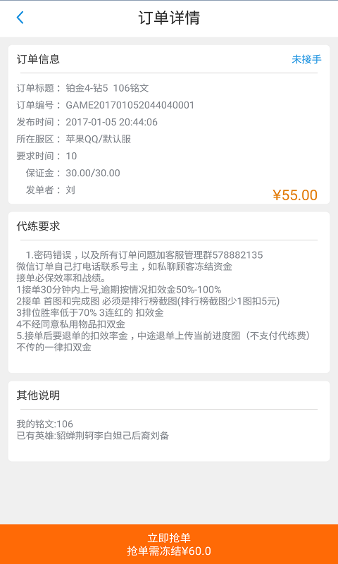 象游游app是一款為游戲代練交易提供服務(wù)平臺(tái)的手機(jī)軟件,想要進(jìn)行代練交易的雙方用戶都可在該軟件上發(fā)布信息,快速找尋合適的上家或下家,解決了代練服務(wù)諸多令人困擾的問題。