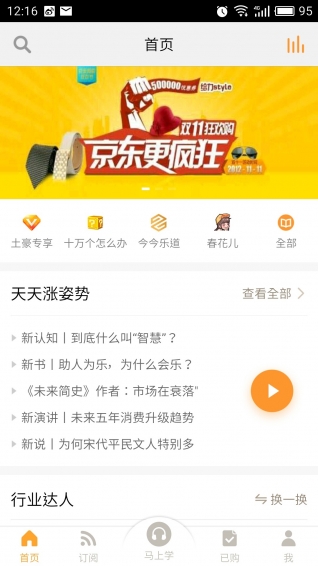 為您定制:《今今樂道》,專治各種想不開,陪跑所有創(chuàng)業(yè)者的創(chuàng)業(yè)夢想;《盒飯財(cái)經(jīng)》,商業(yè)變革觀察者何伊凡與中國極具實(shí)戰(zhàn)經(jīng)驗(yàn)的企業(yè)家一起,專注“商業(yè)決策者的十萬個(gè)怎么辦”;還有更多大咖專欄,為您提供不同細(xì)分行業(yè)好玩有用的知識干貨。每天半小時(shí),幫您省級知識,拓展視野,迭代思維。