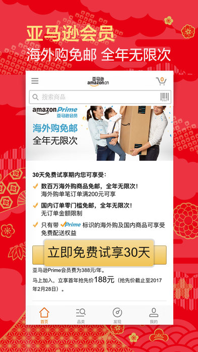 亞馬遜Prime正式登陸中國。亞馬遜用戶加入亞馬遜 Prime,可享數(shù)百萬海外購Prime商品訂單滿200元免運費以及國內(nèi)訂單零門檻免運費,全年無限次。亞馬遜Prime會員費為388元/年。