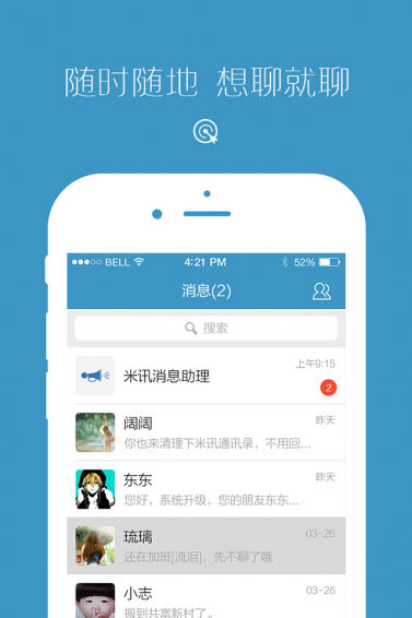米訊,是IT人的一種工作方式,讓你迅速建立起屬于自己的IT圈。可以聊天-支持發(fā)送語音、短信、視頻圖片和文字。