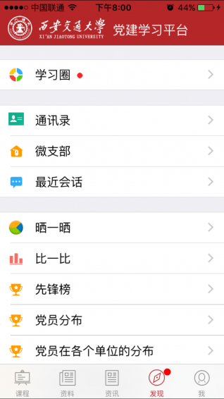 交大學(xué)習(xí)平臺是面向西安交通大學(xué)廣大黨員、干部、群眾的網(wǎng)絡(luò)學(xué)習(xí)平臺。致力于服務(wù)西安交通大學(xué)33個基層黨組織,針對一萬余黨員的學(xué)習(xí)需求,建設(shè)學(xué)?;鶎狱h組織和工廠黨員學(xué)習(xí)平臺、交流平臺、服務(wù)平臺和表彰平臺。交大學(xué)習(xí)平臺包含視頻學(xué)習(xí)、學(xué)習(xí)資料、資訊展示、在線答題測評、微支部互動等功能,方便使用,黨員學(xué)習(xí)的好幫手。