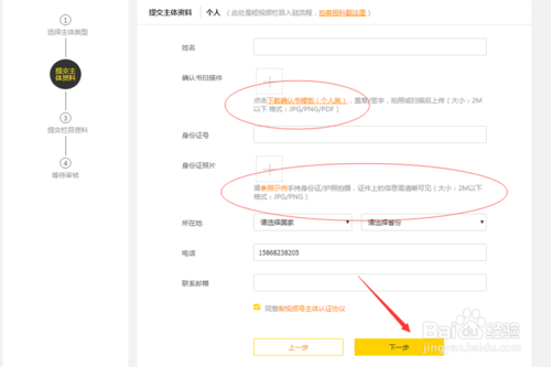 填寫主體資料,點擊下一步
