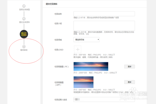 填寫欄目資料,點擊提交審核