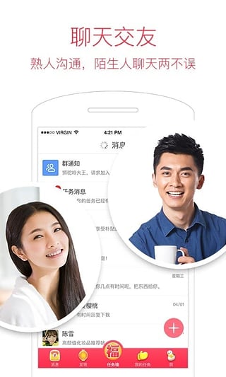 雙方通過“發(fā)布任務”—“執(zhí)行任務”的互助模式建立聯(lián)系,打造價值社交,展現(xiàn)個人魅力,賺錢交友兩不誤。
