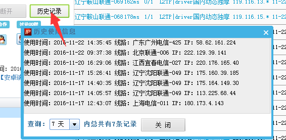 2.IP查詢功能查詢某條線路的IP使用情況,獨享線路保證該IP24小時內只出現(xiàn)過1次。