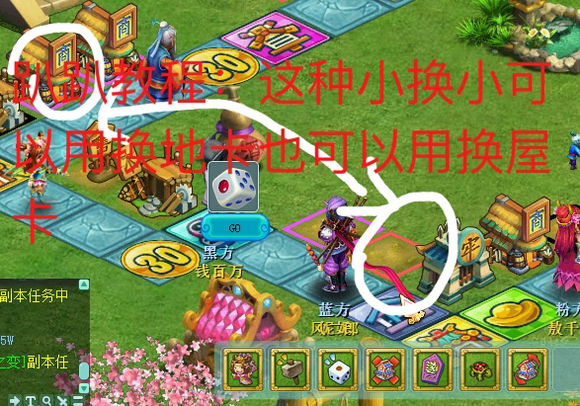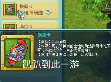 技巧七:換房子。利用到的道具有(換屋卡)和(換地卡)