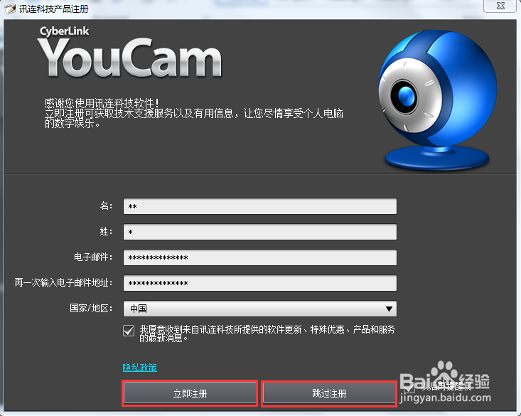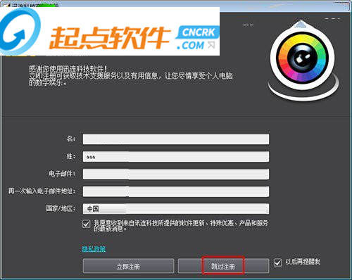 6、打開軟件,彈出注冊界面,這里先跳過;