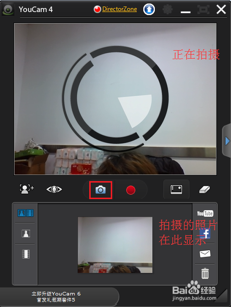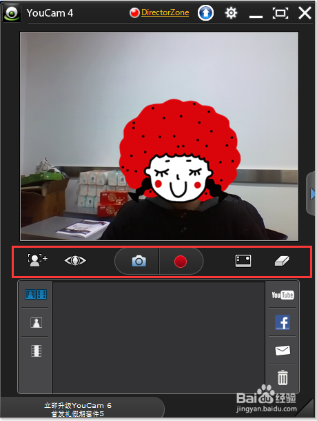 進入軟件的同時,攝像頭被自動調(diào)用, 您可以看到當(dāng)前攝像頭捕捉到的畫面以及一些工具按鈕。下面將逐一進行介紹每個工具的功能