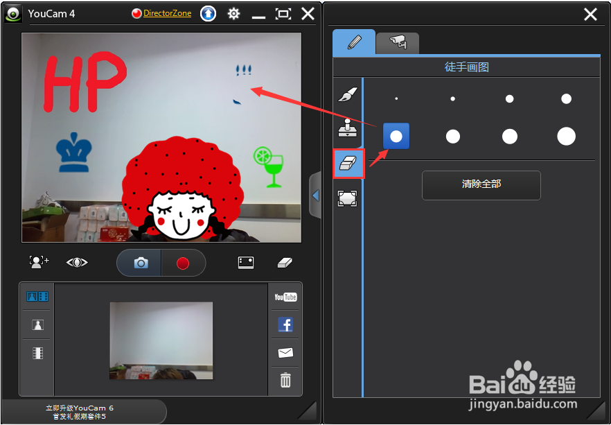 單擊“橡皮”,選擇擦除面積,然后可以用鼠標(biāo)擦除之前添加的涂鴉效果