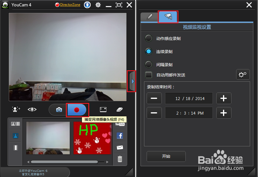 錄像——在開始錄像之前,首先單擊右側(cè)的箭頭,然后單擊攝像頭圖標(biāo),進行拍攝設(shè)置,您可以選擇連續(xù)錄制、間隔錄制等不同方式,默認為連續(xù)錄制。選擇好后,單擊錄像工具進行視頻錄制