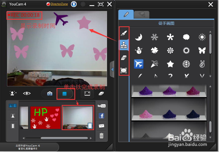 錄制視頻時,左上角顯示錄制時間,您仍然可以對圖像進行涂鴉,要想結(jié)束錄制,單擊藍色方塊