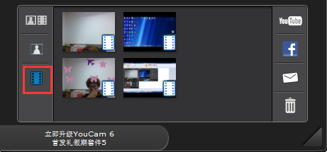 所有使用Youcam軟件拍攝的照片和視頻都會顯示在軟件的下方,您可以在左側(cè)選擇顯示方式,由上至下分別是“照片+視頻”、“僅顯示照片”和“僅顯示視頻”
