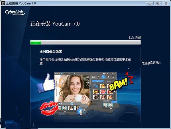5、看到“cyberlink youcam deluxe was successful”即得到了一個無限制的youcam7豪華破解版本;