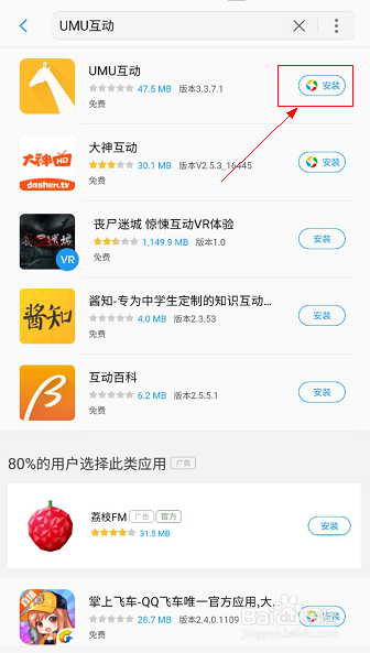 在商店中搜索UMU互動,如下圖所示