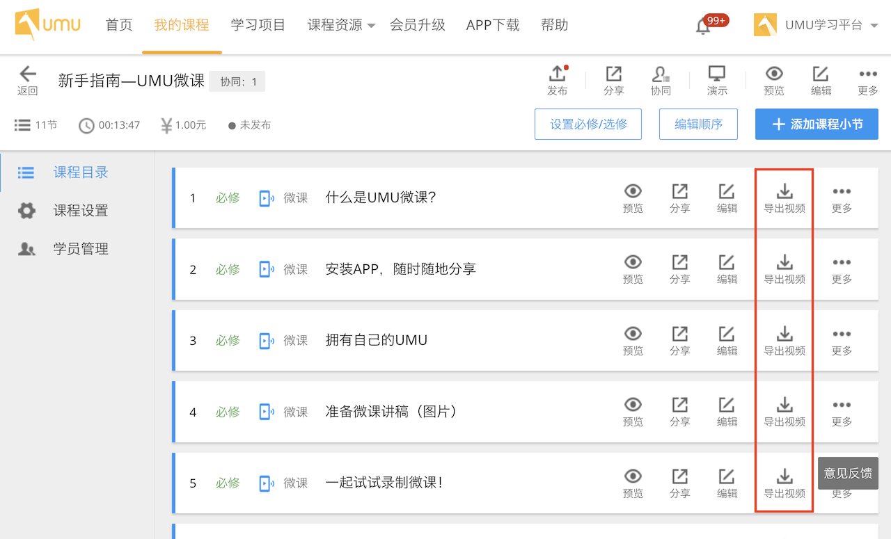 怎樣將UMU微課導(dǎo)出視頻?