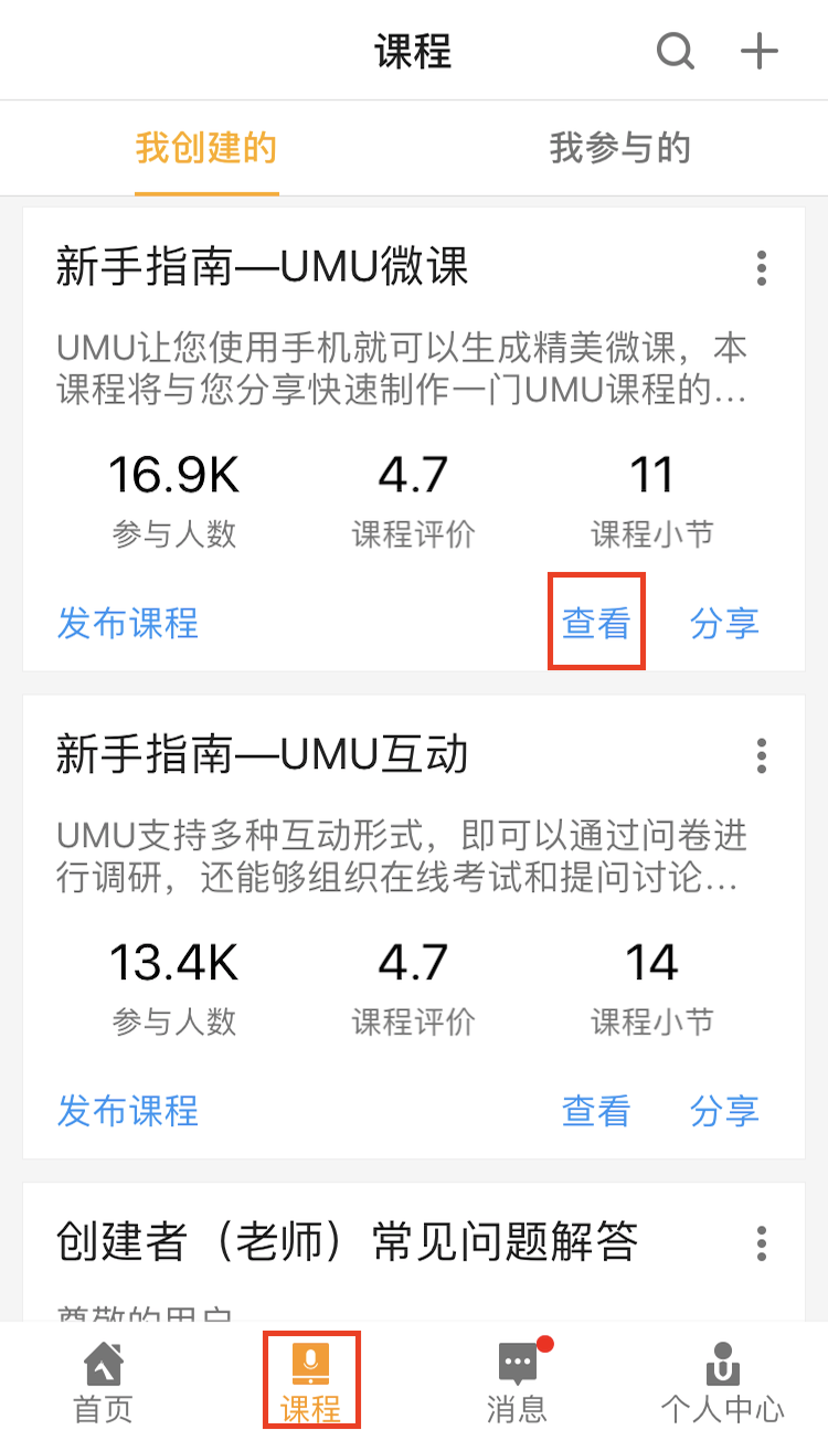 在“課程”模塊中,點擊“查看”。