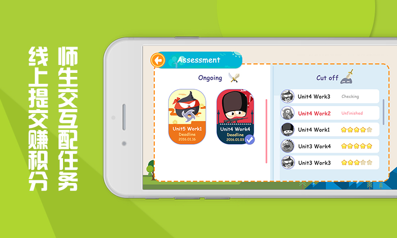 這里的課程結(jié)構(gòu)是經(jīng)過教研團隊精心安排的,符合教材課程的線下授課進度; 逐課闖關(guān)的游戲模式,激發(fā)你的斗志,前來沖關(guān)吧!