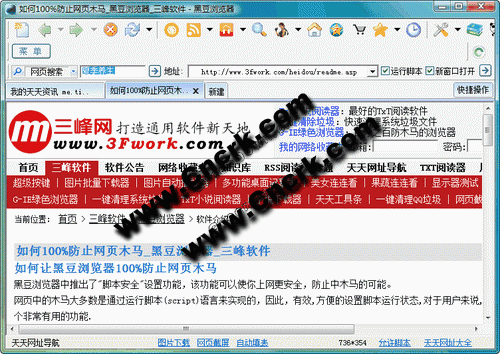 黑豆瀏覽器經(jīng)過簡單的設置便可以百分百防止網(wǎng)頁木馬。黑豆瀏覽器除了一般瀏覽器的功能外還集成了大量實用工具如:網(wǎng)頁截屏功能,自動填表功能,便簽功能,瀏覽器臨時文件提取功能,網(wǎng)站圖片批量下載功能等等。