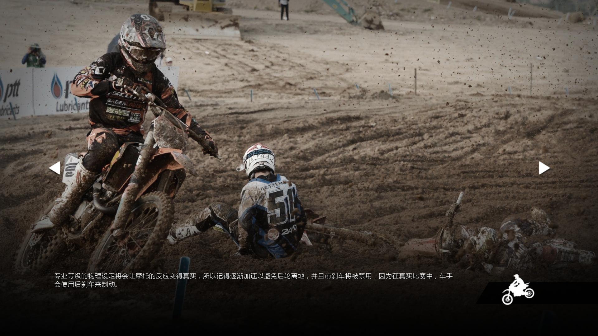 世界摩托車錦標(biāo)賽是摩托越野項(xiàng)目中的頂級(jí)賽事。其中分為MX1、MX2兩種組別。根據(jù)組別的不同選擇的車輛排氣量有較大的不同,例如在職業(yè)生涯中玩家就需要在MX2級(jí)別中開始生涯,然后進(jìn)入MX1。這其實(shí)就相當(dāng)于格斗比賽中的“體重級(jí)別”只是賽車排氣量越大對(duì)操作要求就更高。