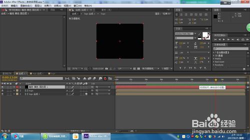 把logo拖放到logo合成1上面,打開logo合成1的三維開關(guān)。在logo合成1畫矩形遮罩,一秒是遮罩在左側(cè),4秒時(shí)移到畫面右側(cè)。羽化60.