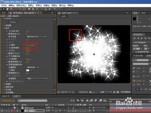 接著來看看旋轉(zhuǎn)和旋轉(zhuǎn)速度,這里調(diào)光粒子類型為星光來看,旋轉(zhuǎn)就是旋轉(zhuǎn)粒子角度,旋轉(zhuǎn)速度就是旋轉(zhuǎn)粒子的速度,數(shù)值越小越慢,反之越快,如下圖: