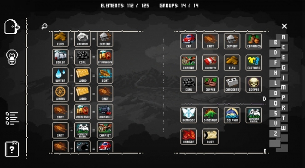 游戲的操作很簡(jiǎn)單,我們點(diǎn)擊每一種物品大類,就會(huì)彈出里面所包含的小類型,然后點(diǎn)擊兩個(gè)不同小類型就能組合了,通過組合可以獲得更多全新的東西,例如水和浮游生物組合可以得到魚類。游戲采用了全屏觸控的選擇方式,玩家們不需要任何嚴(yán)格的手法需求,按照自己的想法選擇不同東西進(jìn)行組合即可,非常的自由。