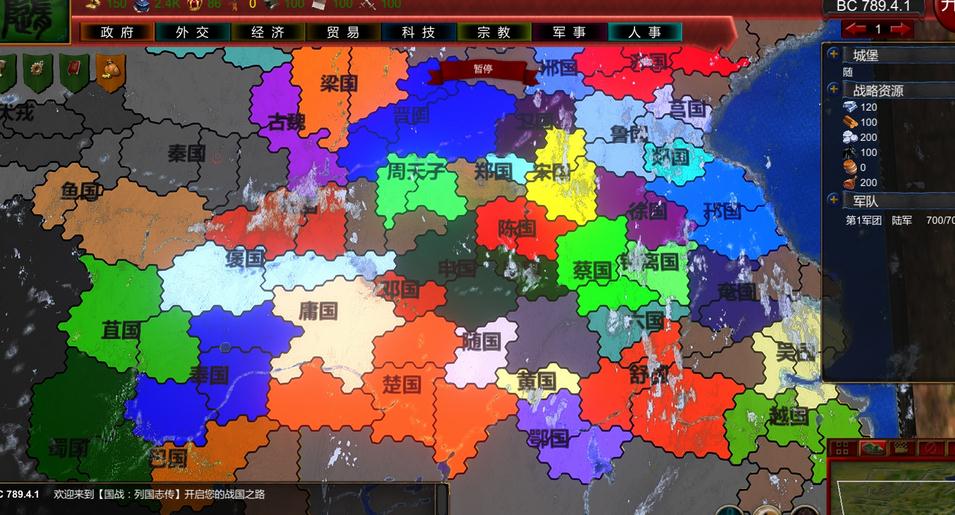 玩家可以管理整個國家的政治,經(jīng)濟,文化,包括任命官員,設(shè)置政體,選擇繼承人,管理收支平衡,發(fā)展城市,研究科技,選擇思想(比如儒家,墨家,法家),控制貿(mào)易,管理人事。目前游戲還屬于剛起步階段,還有許多好玩的系統(tǒng)會在之后的版本陸續(xù)更新,比如海戰(zhàn)系統(tǒng),將軍系統(tǒng),決議系統(tǒng),朝貢系統(tǒng)。【使用方法】