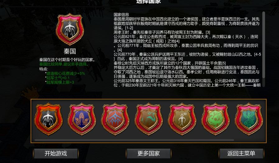 游戲背景設(shè)置在公元700年前的中國大陸上,此時強大的西周王朝因為家族矛盾,內(nèi)部人員勾結(jié)犬戎最終被犬戎所滅,在秦王的保護下周平王被迫遷都。隨著強大的周天子淪為花瓶以后,各大諸侯國紛紛登上歷史舞臺。目前的游戲?qū)儆陂_放式玩法,玩家可以選擇地圖上的任意國家來開始游戲。【游戲玩法】