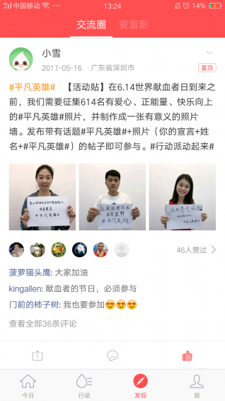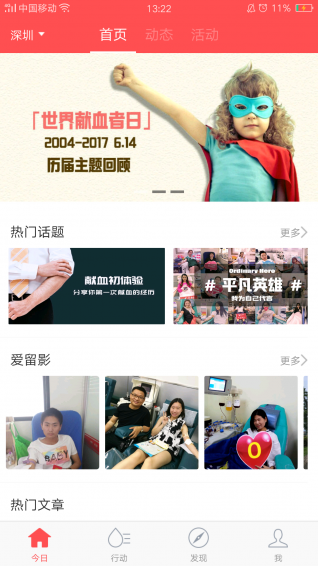 獻(xiàn)血人的交流圈,這里有全國(guó)各地幾十萬(wàn)的獻(xiàn)血人在分享自己的獻(xiàn)血?dú)v程,并且不時(shí)的分享有趣好玩的圖片!