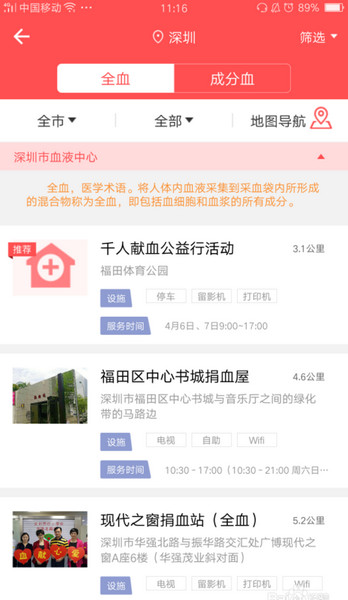 想要去獻(xiàn)血,打開(kāi)今日獻(xiàn)血APP,點(diǎn)擊去獻(xiàn)血,就可以看到附近所有采集全血和成分血的獻(xiàn)血地址以及電話,采血上班時(shí)間等,并且還可以預(yù)約以及地圖導(dǎo)航。在成分血里也會(huì)羅列采集ABO等不同血型的地址電話時(shí)間等信息。是一款方便的軟件,適用去想要獻(xiàn)血不知道去哪獻(xiàn)血的地方,同樣也適應(yīng)長(zhǎng)期獻(xiàn)血者可以隨時(shí)預(yù)約導(dǎo)航到各個(gè)附近的獻(xiàn)血點(diǎn)。